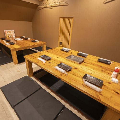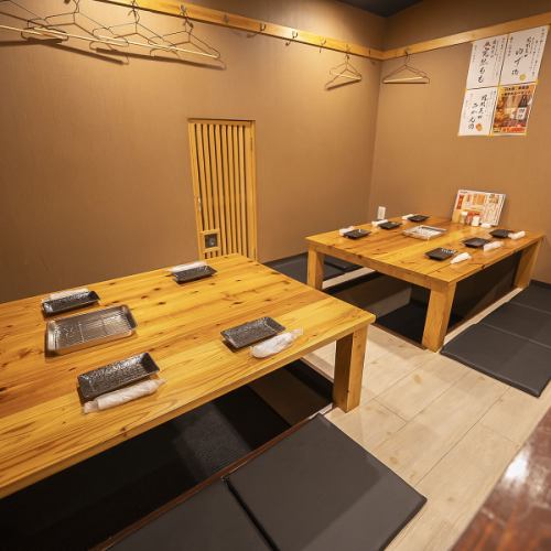 靴を脱いでリラックスできる掘りごたつタイプのお座敷も完備しており、最大10名様までご利用いただけます。お子様連れのお客様や各種宴会に最適です。また、貸切も可能ですのでぜひお気軽にご相談ください。